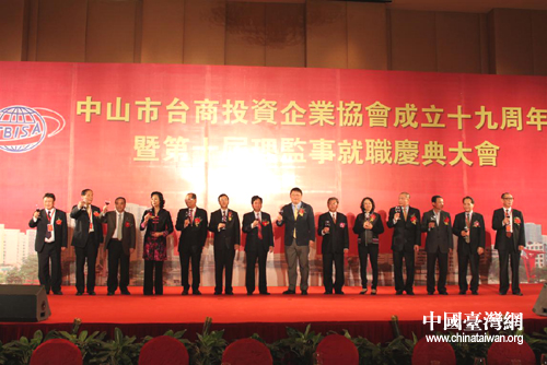 中山市台商协会举行成立十九周年暨第十届理监事就职庆典大会。(图片来源:中山市台办)