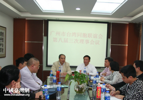 中国台湾网4月3日广州消息 日前,广州市台联召开八届三次理事会议。会议的主要议题是总结2012年市台联的工作,传达第九次全国台湾同胞代表会议及广州市统战工作会议精神,表彰2012年度台联工作积极分子。会议由市台联曹永旭副会长主持,市委统战部联络处处长高荫堂应邀出席并代表部里讲话。广州市台联全体理事与会。