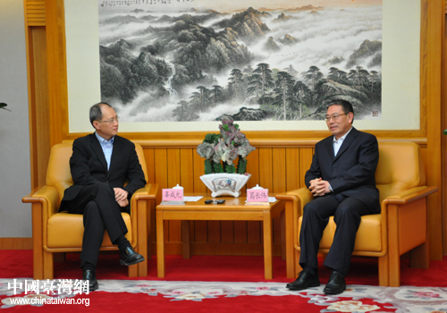 清远市委书记葛长伟会见台湾台泥董事长辜成允,图为会见现场。(图片来源:清远市台办)