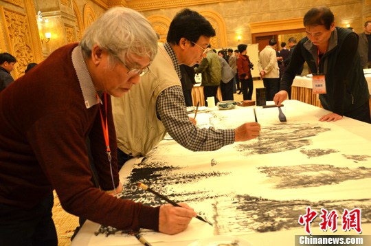 图为台湾画家在作画。中新社发 黄耀辉 摄