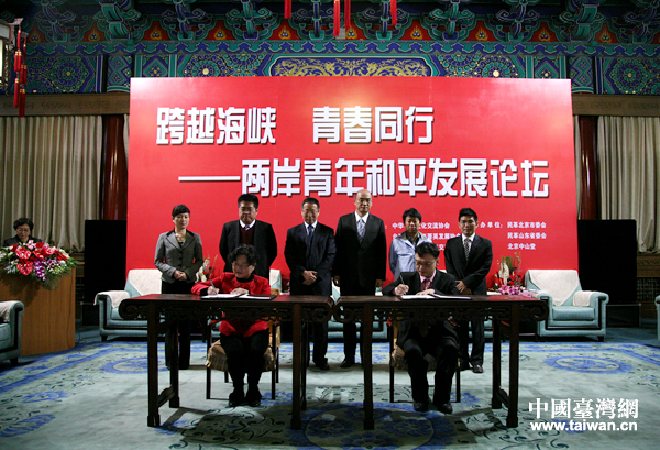 论坛上,两岸主办单位代表签署了合作意向书,与会青年嘉宾在通过充分交流探讨后,达成多项共识,并发表了共同宣言。(中国台湾网记者 普燕)