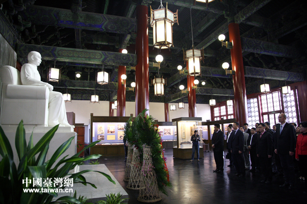 论坛前,两岸与会嘉宾拜谒中山像。(中国台湾网 普燕 摄)