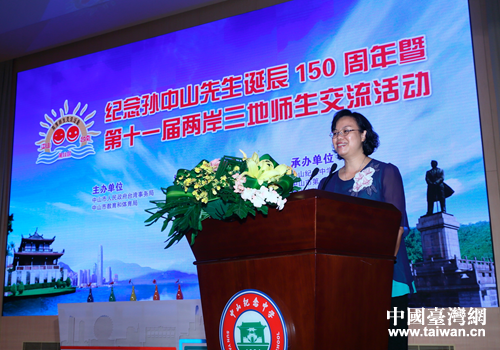 中国台湾网10月8日中山讯 9月23日,纪念孙中山先生诞辰150周年暨第十一届两岸三地师生交流活动开幕式在中山纪念中学隆重举行。中共中山市委常委梁丽娴,广东省海峡两岸交流促进会副会长林华轩,中山市委统战部副部长、中山海外联谊会副会长郑向荣,中山市人民政府台湾事务局局长林庆和,中山市教育和体育局局长李长春,中山市台商投资企业协会会长施育舒,中华海峡政经文教交流协会理事长鲜正桦,台湾海峡两岸文教经贸宗教交流协会理事长蔡明堂,台南市教育及儿童青少年发展会理事长施俊钧等领导、嘉宾出席了活动。