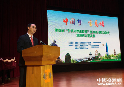 启动仪式上,赖小景副校长致开幕词。他说,此次“台湾知识进校园”系列活动内容更丰富,不仅将演讲比赛、宣讲活动、知识竞赛、台湾电影观赏、台资企业参访活动等项目延续了下来,还增加了海峡两岸美文朗诵会项目。活动不仅能加强学生涉台知识的教育,加深对两岸关系和平发展的认知,还能激发青年学生的爱国热情,增强为祖国统一作贡献的使命感和责任感,具有深远的意义。他介绍,河职院近年来积极与台湾高校建立良好的合作关系,今年派出2名交换生赴台交流学习,日后将派出更多的老师与学生代表赴台交流学习,为河台两地的交流合作作出贡献。他还对各承办单位对活动的大力支持表示感谢。他希望各个院校继续积极配合,加强联系,共同努力把此次活动办好。
