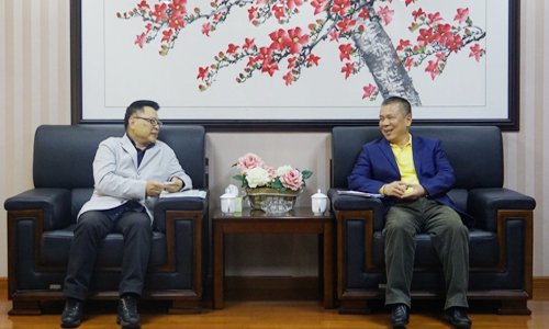 广东省台办主任黄耿城(右)会见台湾工商团体秘书长联谊会秘书长黄章富