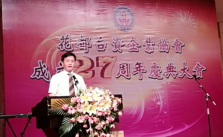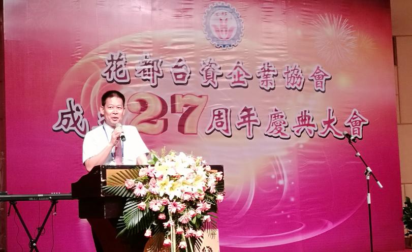2017年7月14日,花都台资企业协会会长童祖耀在协会成立27周年庆典会上致辞