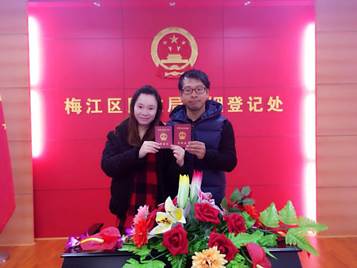 2015年,机缘巧合,彭瑾瑜认识了在梅江区的幼儿教师小薛。一年后两个人结为连理。为了小彭的婚礼,老彭高兴的拿出了40万台币。老彭说:“大儿子在台湾结婚时,也是花费40万,小儿子结婚也一样。不能厚此薄彼。”
