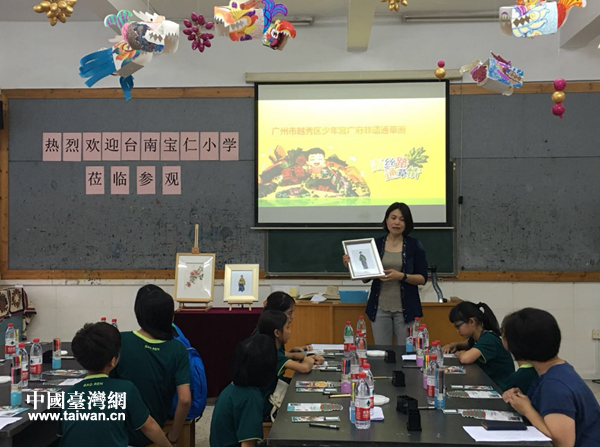 台南宝仁小学师生团体验越秀区少年宫通草画课程。(图片来源:广州市台办、越秀区台办)