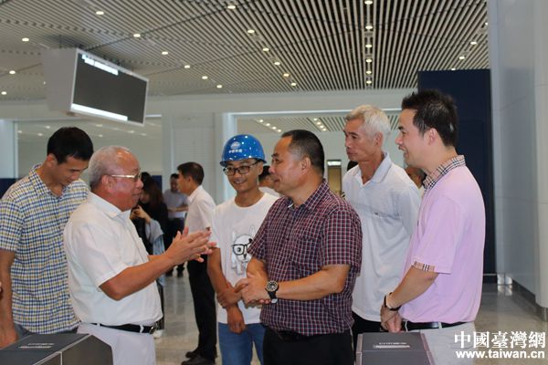 中国台湾网7月5日阳江讯 6月28日上午,在江湛铁路阳江站即将通车之际,阳江市台商协会组织在阳台商一行参观了江湛铁路阳江站,先后实地察看了进站道路、站前广场、站房以及周边配套交通枢纽的建设情况,详细了解了站场启用、通车各项准备、先进的智能化系统和设备等情况。阳江市台办系统主要负责同志参加了有关活动。