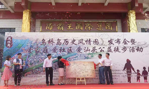 汕头创文行动如火如荼进行,乌桥岛棚户区改造计划已正式实施。2017年5月21日下午,由汕头市金平区乌桥街道基层社会组织联合会主办的《“乌桥岛历史风情图”发布会暨爱家庭爱社区爱汕头公益徒步活动》,在海霸王原保龄球馆门口举行,海霸王(汕头)食品有限公司在资金方面给予大力支持外,积极主动提供活动场地、设施等多方协助,同时在现场还设置了爱心义卖以及形式多样的互动活动,全力支持汕头创文行动,为乌桥岛的过去、现在以及未来点赞。(中国台湾网、汕头市台办联合报道)