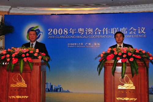 12月4日,2008年粤澳合作联席会议在珠海召开,会上粤澳双方共签署了城市建设、旅游等8个合作文件。记者徐清扬摄
