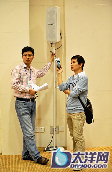 两名电台的记者为了能录到代表们最清晰的发言声,连续一个多小时保持了这种有趣的录音姿势。