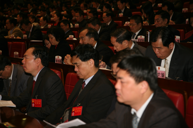 出席省十一届人大三次会议的人大代表认真听取黄华华省长作政府工作报告。陈伊曼 摄影