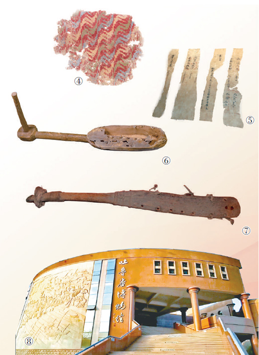吐鲁番博物馆始创于1956年,2009年9月,新馆(图⑧,资料图片)建成并免费对公众开放。新馆占地面积30亩,陈列面积4278平方米,现有藏品20637件(套),其中,珍贵文物892件(套),一级文物149件。藏品分为35种,包括石、陶、木、铜、铁、金、银器、钱币、毛麻丝织品、皮质品、木雕、泥俑、绘画、考古人类学标本、动植物化石标本、粮食、干果及各类食品等。现设吐鲁番通史展、吐鲁番出土文书展、吐鲁番巨犀化石展、吐鲁番出土钱币展等常设展览。