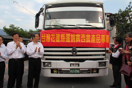 广西壮族自治区主席马飚在农产品交接仪式上表示,希望通过这次采购活动,进一步畅通广西和花莲县两地农产品购销渠道,使两地农产品的贸易合作常态化,通过对花莲县农产品的推介,引导广西果农、茶农引进新品种、改良品质,提高种植业的运销水平和经济效益。“桂是广西的简称,花莲的第一个字是‘花’,如今广西与花莲合作越来越紧密,正如‘桂花香千里’那样美好。”