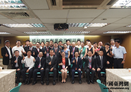中国台湾网7月24日台北消息 7月23日下午,2012年桂台经贸文化论坛系列活动之“2012桂台青年创业合作恳谈会”在台北隆重举行。该活动由广西青年联合会、台湾青年创业总会两岸青年组织联合举办,围绕“青春携手 共创未来”主题,广西青联代表团全体成员及台湾青创总会、台北青创会青年代表共50多人出席了恳谈会。