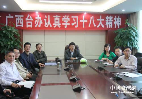 广西台办认真学习十八大精神。(图片来源:广西台办)
