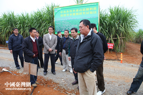 参访团考察江州区甘蔗高效节水灌溉项目建设示范基地。(图片来源:崇左市台办)