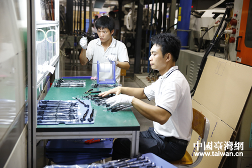 调研组走进车间,了解企业生产经营情况。(图片来源:广西台办)