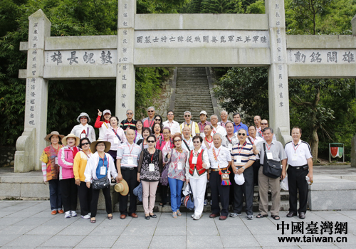考察团一行在昆仑关参访时合影留念。(图片来源:广西台办)