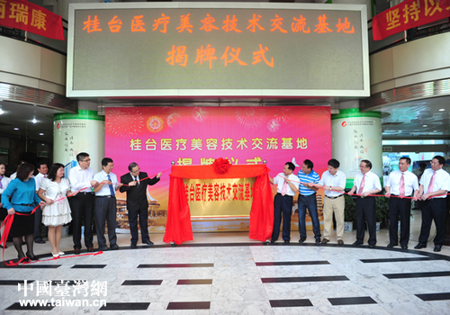 中国台湾网7月3日南宁消息 日前,“桂台医疗美容技术交流基地”揭牌仪式在广西中医药大学附属瑞康医院整形美容中心隆重举行。这是在广西设立的首个两岸医疗美容技术交流基地。