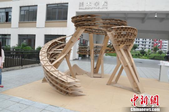 广西艺术学院、建国科技大学、东方设计学院2015届本科毕业设计作品联展30日在广西南宁开幕,姚琳璇的作品被摆在展览最显眼的位置。她告诉记者,这个建筑模型由许多有序而自由的三角形镂空组合而成,拥有完美的动态空间效果,置身其中,整个人都可以沉浸在光与影的集合空间之中。