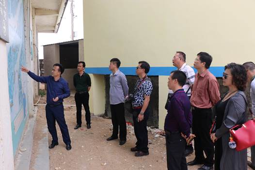 北海市台办主任张永军(前左3)陪同考察北海铁山港区营盘镇青山头养殖基地。