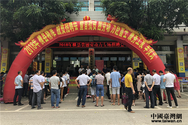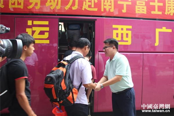 中国台湾网7月2日横县讯 近日,广西南宁市横县举办2018年贫困劳动力专场招聘会暨首批贫困劳动力赴南宁富士康务工发车仪式,来自全县17个乡镇25名贫困劳动力乘上大巴前往南宁富士康公司务工,开启他们的脱贫致富之路。