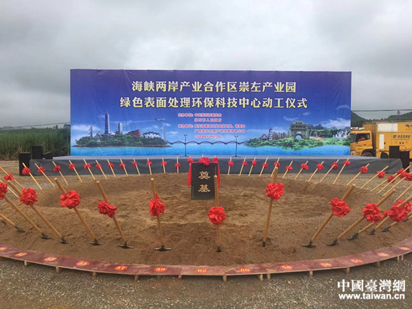 海峡两岸产业合作区崇左产业园举行绿色表面处理环保科技中心动工仪式。(图片来源:广西台办)
