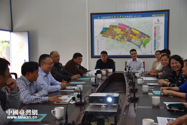 玉林台籍博士、台资企业代与玉林市中医药健康产业园管委座谈交流。(图片来源:玉林市台办)