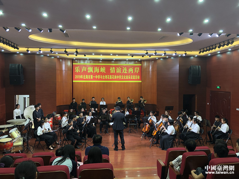 中国台湾网5月13日北海讯 5月9日,台湾花莲县花岗中学音乐参访团师生一行29人到广西北海,与北海一中师生齐聚一堂,开展以“乐声飘海峡,情谊连两岸”为主题的音乐交流,为观众们带来了一场听觉盛宴。