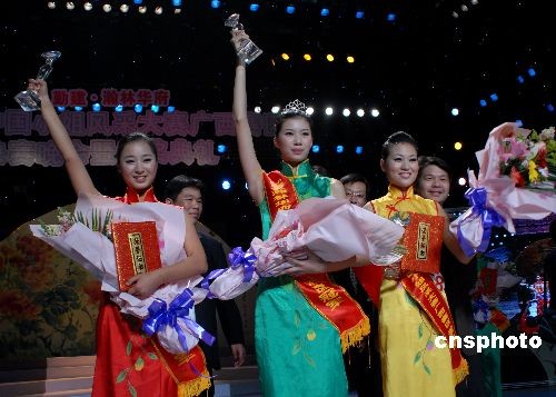 12月20日,备受瞩目的2008中国小姐风采大赛广西赛区决赛在南宁落下帷幕。经过民族服装及自我介绍、活力装展示、泳装展示等比赛环节的比拼,最终评选出冠、亚、季军选手,冠军由黄依婷获得,亚军、季军分别由戴冰、梁春获得。中新社发 彭寰 摄