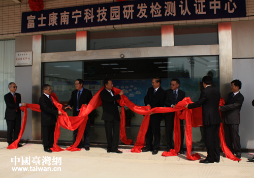 中国台湾网10月30日南宁消息 日前,富士康科技集团南宁研发检测认证中心揭牌仪式在南宁富士康沙井科技园区举行。广西自治区党委常委、南宁市委书记余远辉、广西自治区副主席陈刚、南宁市市长周红波,广西自治区台办、工信委、科技厅等部门领导出席;富士康科技集团总裁郭台铭、副总裁吕芳铭等富士康高层也一同出席揭牌仪式。