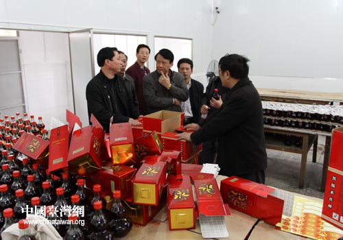 黔南州台办领导与台商杜永盛到惠水黑糯米酒厂考察(黔南州台办 吴建国 摄)