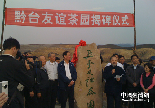 台湾中华茶文化学会理事长范增平先生参加黔台友谊茶园揭牌仪式(贵定县台办 杨玉霞 摄)