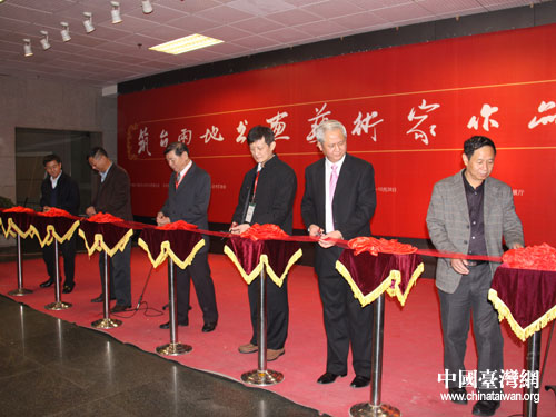 中国台湾网10月26日贵阳消息 10月25日上午,贵阳市美术馆前鲜花簇拥,热闹非常,“筑台两地书画艺术交流展”在筑隆重开幕。贵州省台办副主任韩支前,省文化厅副厅长、省书法家协会名誉主席邓健,贵阳市政协副主席夏刚等有关领导出席开幕式并参观展览。