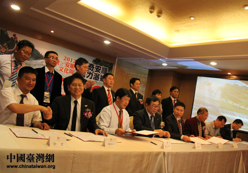 交流团团长、副团长及台湾文化、经贸和旅游界嘉宾见证签约。(安顺台办 黄凯 摄)
