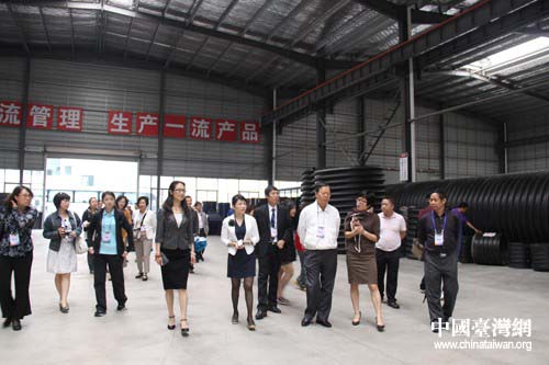 中国台湾网5月24日贵阳消息 日前,台湾青年菁英考察团来到枫叶控股集团贵州管业有限公司参观考察,嘉宾们对该企业自行研制的高密度乙烯(HDPE)给水管材展开了讨论。考察团成员、台中市青工会总会长张伍毅瞅准商机,主动与企业负责人进行了交流,表达出加强合作,共享高科技成果的意愿。