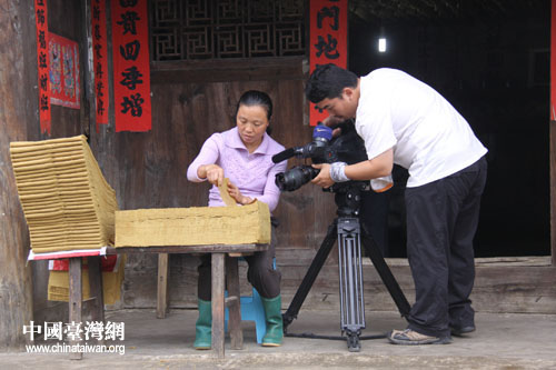 拍摄香纸沟古法造纸(贵阳市台办 胡珊珊 摄)