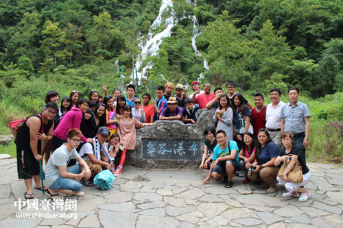 中国台湾网7月19日荔波消息 日前,参加2012年台胞青年千人夏令营贵州分营的台湾青年大学生们,来到荔波小七孔,探访世界自然遗产。有的营员在来贵州之前,就认真查找了中国喀斯特世界自然遗产的资料。他们得知,小七孔景区是国家级风景名胜,集洞、林、湖、瀑、石、水多种景观于一体,玲珑秀丽,有“超级盆景”的美誉。有学者以“神奇绝妙小七孔,狭长幽谷超盆景”诗句赞扬它的美。