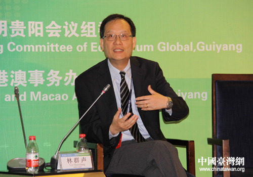 香港城市大学副校长林群声回答记者提问。(贵阳市台办 胡珊珊 摄)