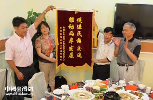 联欢会上,全国台联台湾少数民族文化交流中心与台湾少数民族文化经贸协会为黔南州赠送了“促进民族交流,推进两岸发展”一面锦旗。