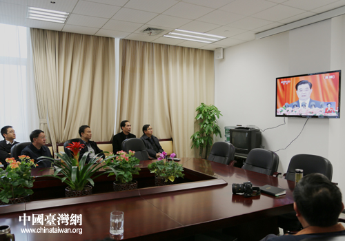 贵州省台办组织党员干部收看收听党的十八大开幕式。(贵州省台办 梁琪 摄)
