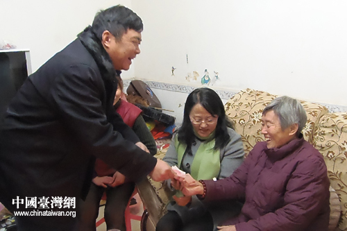 贵州省台联会长邱培声一行慰问台胞遗孀。(安顺市台办 陈兴源 摄)