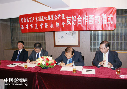 在两岸关系促进会的引荐下,考察团与高雄市农会进行了深入交流与合作沟通,就相关农业农村开发项目达成共识并签署了合作协议。协议对合作内容,合作方式、互访交流机制、成果运用、互建基地、资源共享、建立合作联席会议制度、成立合作专家组以及建立合作新机制等事项进行了明确规定。下一步,双方将就共同关心的山区立体现代农业发展、温泉旅游与休闲农业发展等项目加强联系,展开合作。(中国台湾网、贵阳市乌当区农业考察团联合报道)