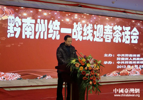 中国台湾网1月28日都匀消息 日前,黔南州委、州人民政府在都匀市举行黔南州统一战线迎春茶话会。州委副书记、州人民政府州长向红琼、州人大常委会主任罗毅、州政协主席高金林、州副书记吴胜华等州领导出席,10名台胞台商台属代表和150多名各族各界代表一同参加。