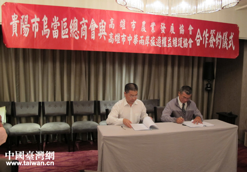 推介会上,乌当区总商会与高雄市农业发展协会、高雄市中华两岸旅游权益维护协会分别签了《乌当区羊午水库旅游》和《乌当区美丽乡村幸福家园旅游示范带》等项目合作意向书,推进两地经贸合作。(中国台湾网、贵阳市乌当区统战部联合报道)