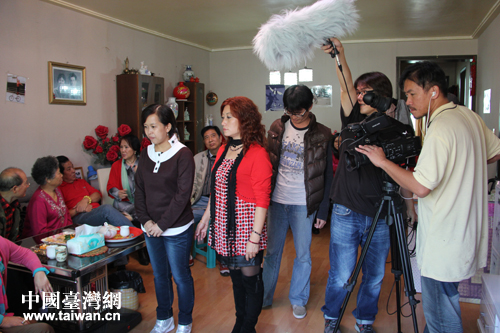 台湾公共台摄制组在高萍(左二)家采访其家人。
