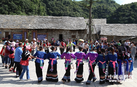 台湾少数民族代表团在千年布依古寨高荡村与当地布依族村民歌舞互动。布依族村民为台湾同胞表演头巾舞、迎客山歌等,台湾同胞带来赛德克族的狩猎歌和布隆族的合唱等节目。两地少数民族还手牵手高歌“我们是一家人,永远的一家人。”台湾少数民族代表团考察了布依族蜡染传统工艺,参观高荡村民俗文化馆,发现布依族祖先用的很多农耕器具有很多相同之处,来自台湾布隆族的伍木成先生表示,相隔遥远的两地少数民族生活生产上非常默契地相似,说明他们的祖先与大陆同源同种,来到高荡看到一排排的石板房,让他感觉又回到了家乡。