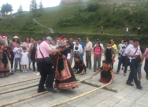 在水城县海平村,当地彝家的姑娘和小伙子们用他们独特的方式迎接远道而来的台湾客人。简单优美的哒踢舞、承载迎宾情意的敬酒歌、富有节奏感的竹竿舞……彝族人的热情豪迈让交流团一行感动不已。当看到一栋栋错落有致、独具一格的千户彝寨,大家由衷赞叹六盘水市的基层管理服务工作做得顺民意,合民心,纷纷表示这儿的人文素质、民族风情都特别好,很喜欢这个地方。